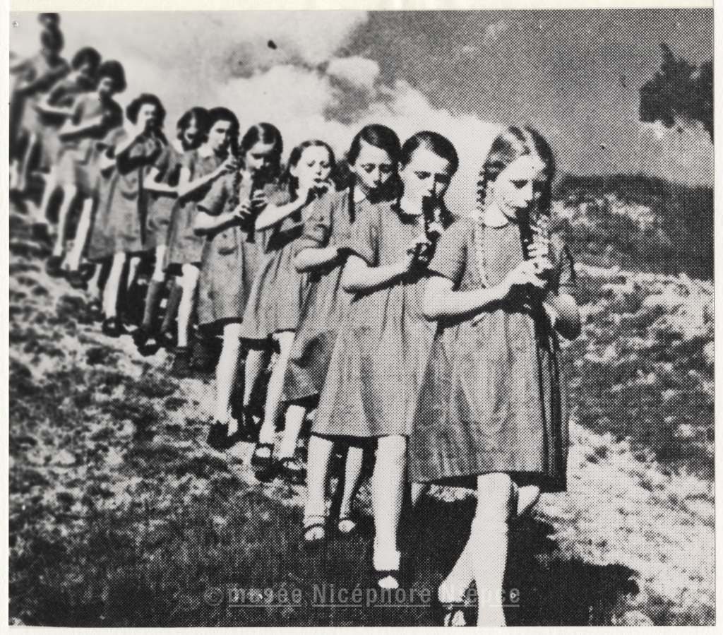 Fillettes allemandes défilant et jouant de la flûte