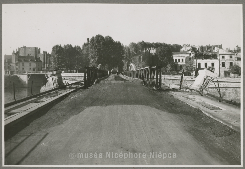Le pont Jean richard et les immeubles rive droite en septembre 1948