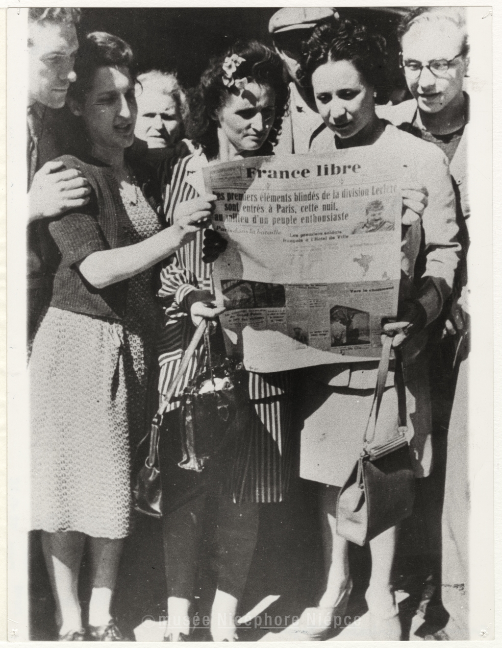 Parisiens lisant le journal France libre après la Libération