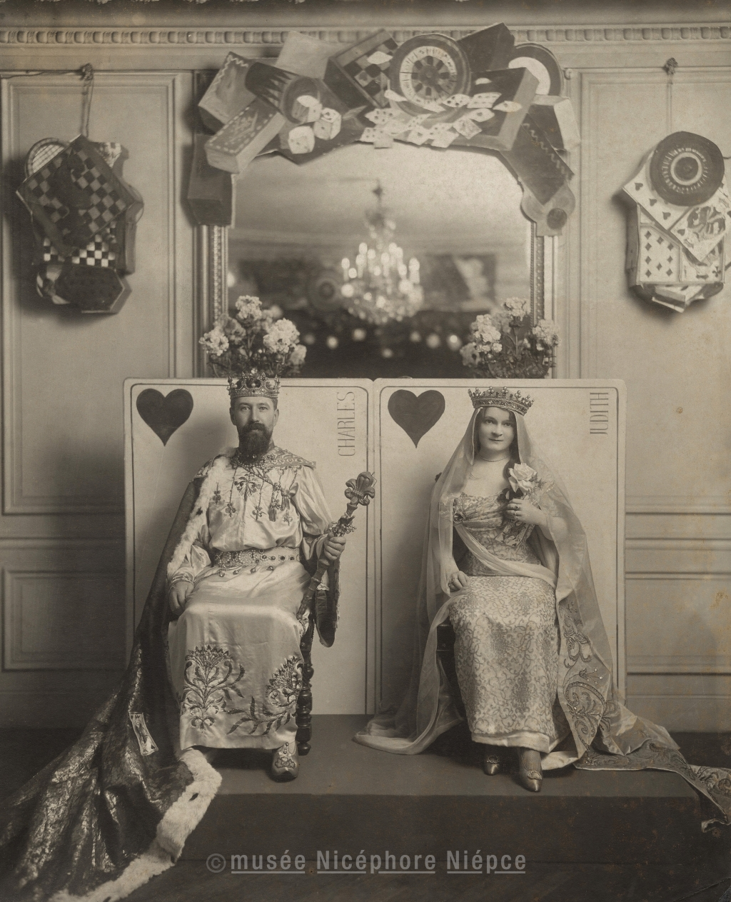 Comédiens habillés de costume de roi et reine de coeur