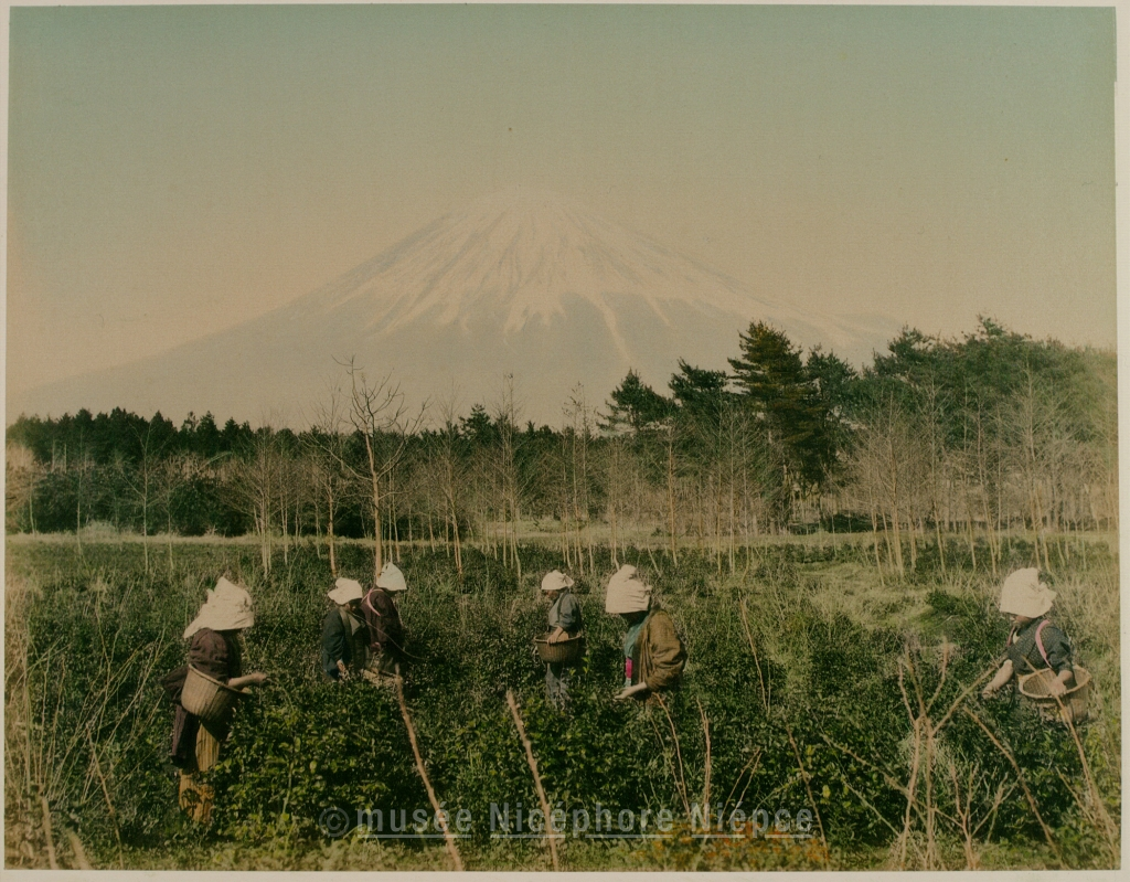 Travaux des champs sur fond de Fuji Yama