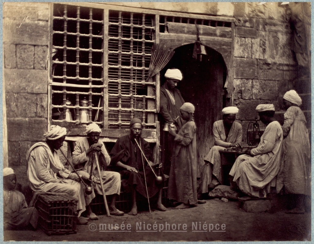 Groupe d'hommes devant un café égyptien