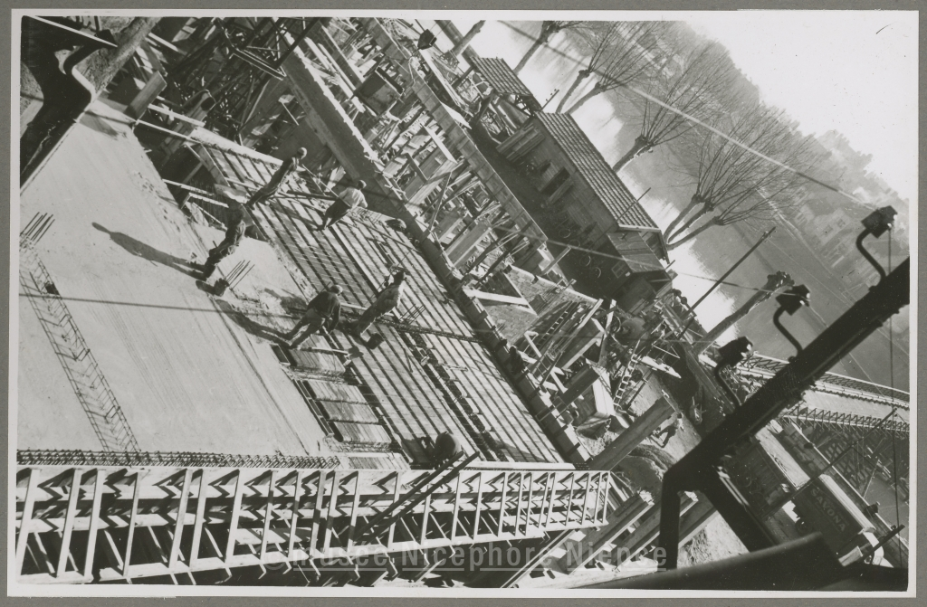 Etat d'avancement de la construction de l'immeuble de la rive droite de la tête du pont St Laurent au 10 mars 1950.