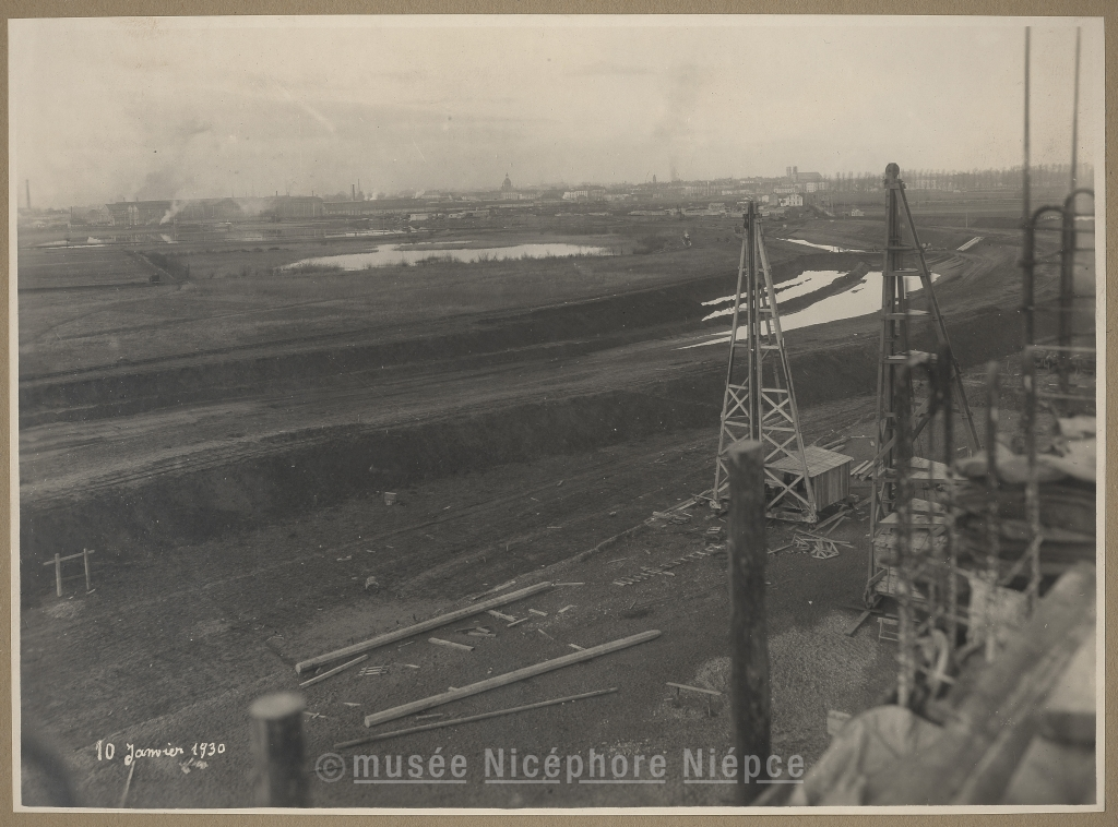 Janvier 1930 Travaux de la centrale thermique de "Formo-Centre"-. Et vue de Chalon sS.-