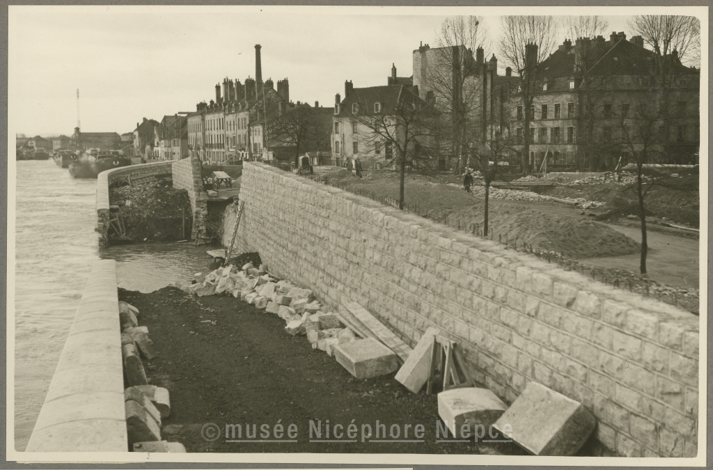 Les travaux d'élévation de la chaussée du quai Gambetta 1er Décembre 1950