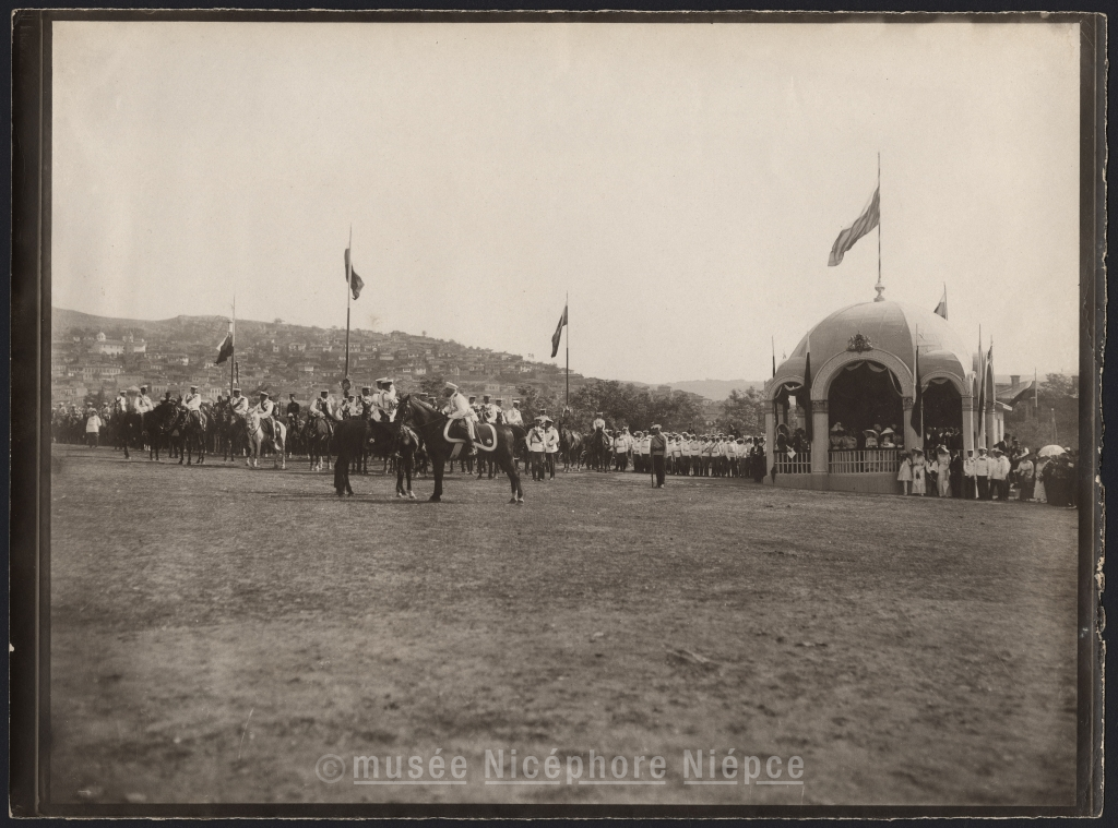 Les fêtes de Tirnovo à l'occasion du 25eme anniversaire de règne de / S.M. le Tzar de Bulgarie. Le tzar passe une grande revue