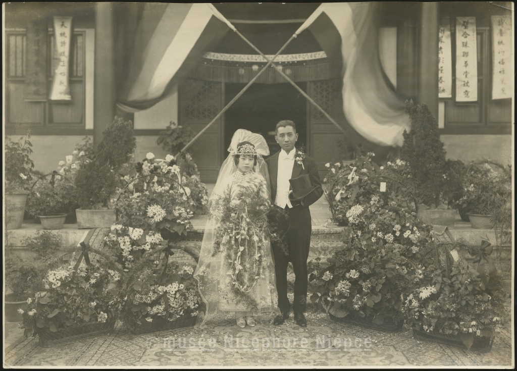 Couple de mariés chinois en costume occidental