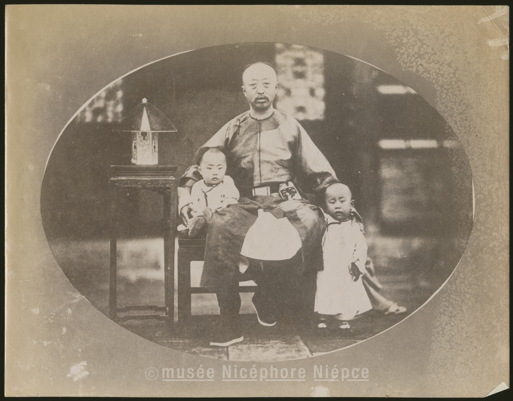 Portrait d'un père et ses deux enfants dont l'un est le futur Empereur de Chine