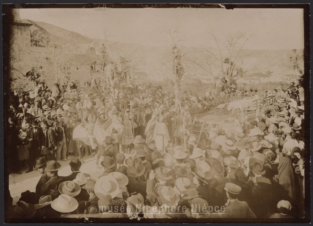 Les fêtes de la Passion en Andalousie./ La foule autour de estradeou/ se font les reconstitution de la vie/ de Jesus.
