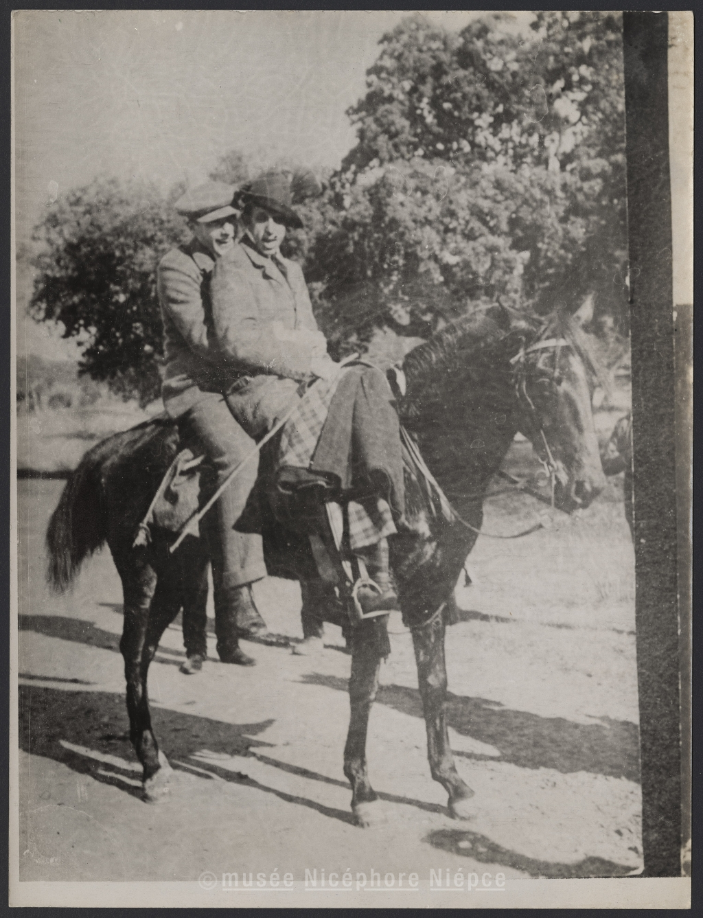 Alphonse XIII d'Espagne avec un jeune homme à cheval