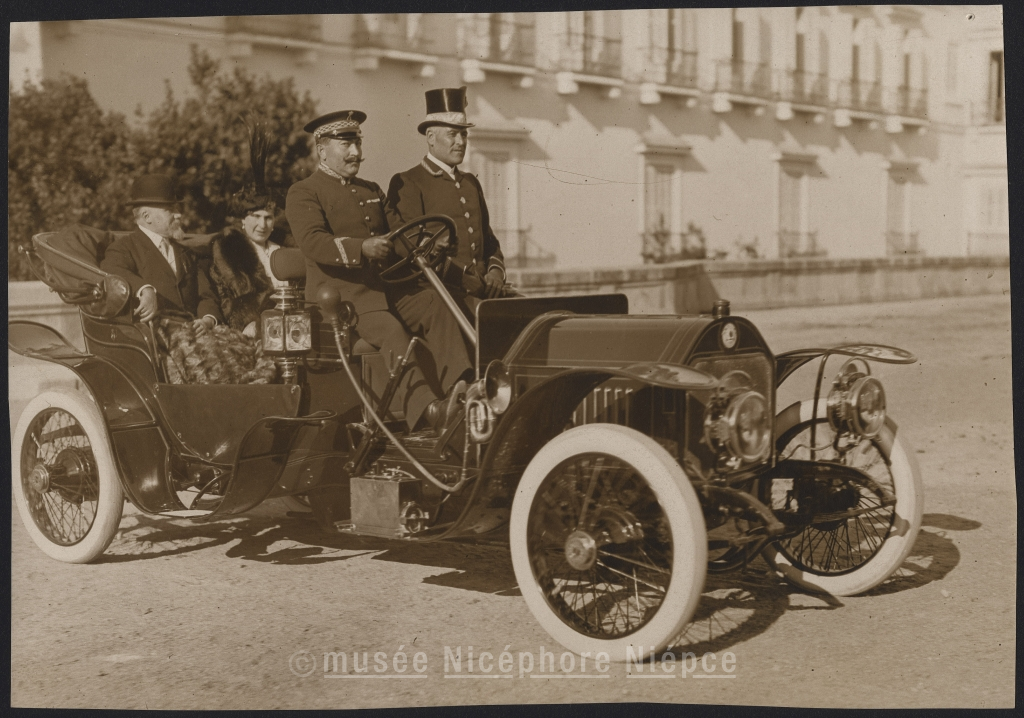 Le président R. Poincaré et la reine d'espagne en automobile