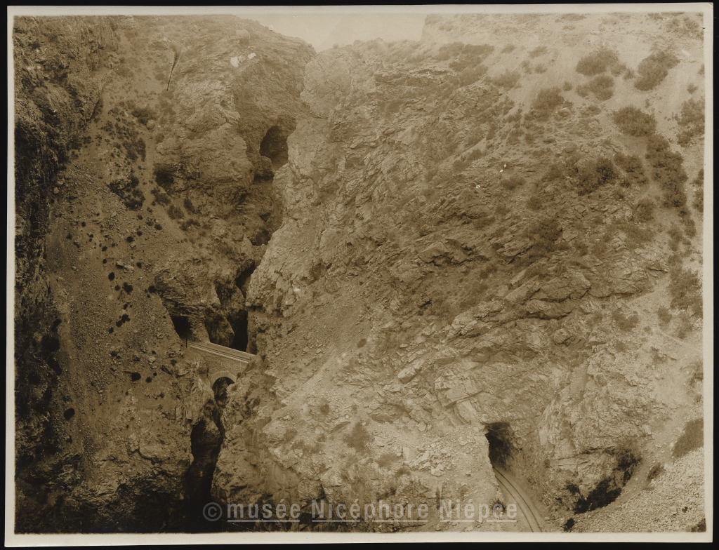 Tunnel taillé dans les montagnes ou passe / le train transandino du Chili en Argentine