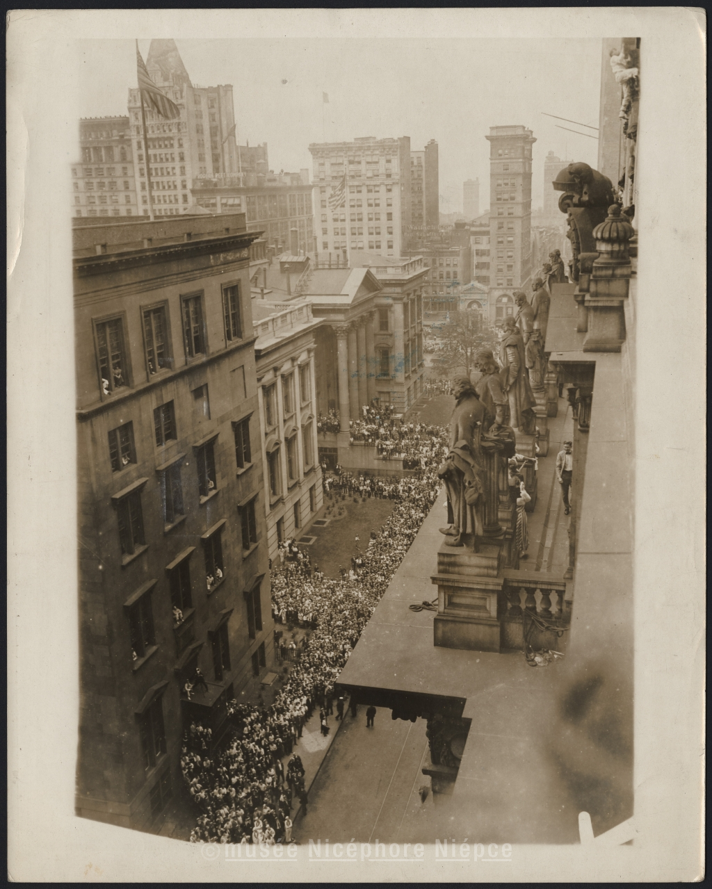 vue d'architecture - scène - foule - homme - façade - bâtiment - vu d'en haut - immeuble - sculpture - Etats-Unis - New York - finances - grimper - CHUSSEAU-FLAVIENS - WESTERN NEWSPAPER UNION PHOTO SERVICE
