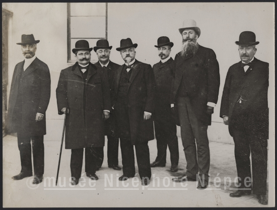 portrait collectif - en pied - chapeau - en pose - homme politique - manteau - ? - Anonyme - CHUSSEAU-FLAVIENS
