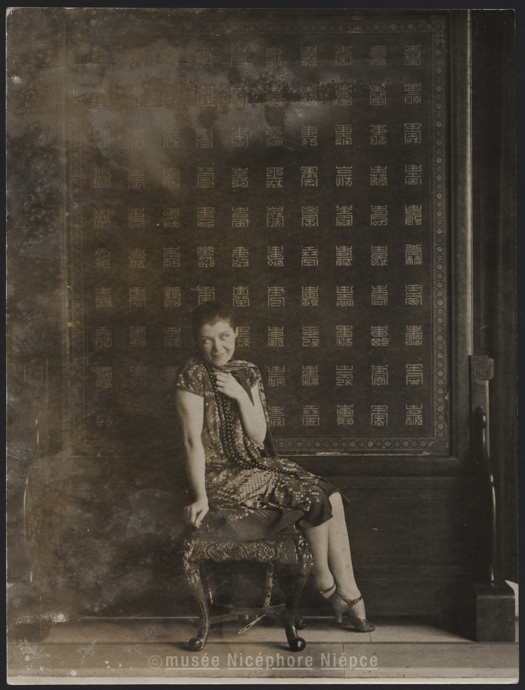 La célèbre Spinelli devant son fameux écran chinois