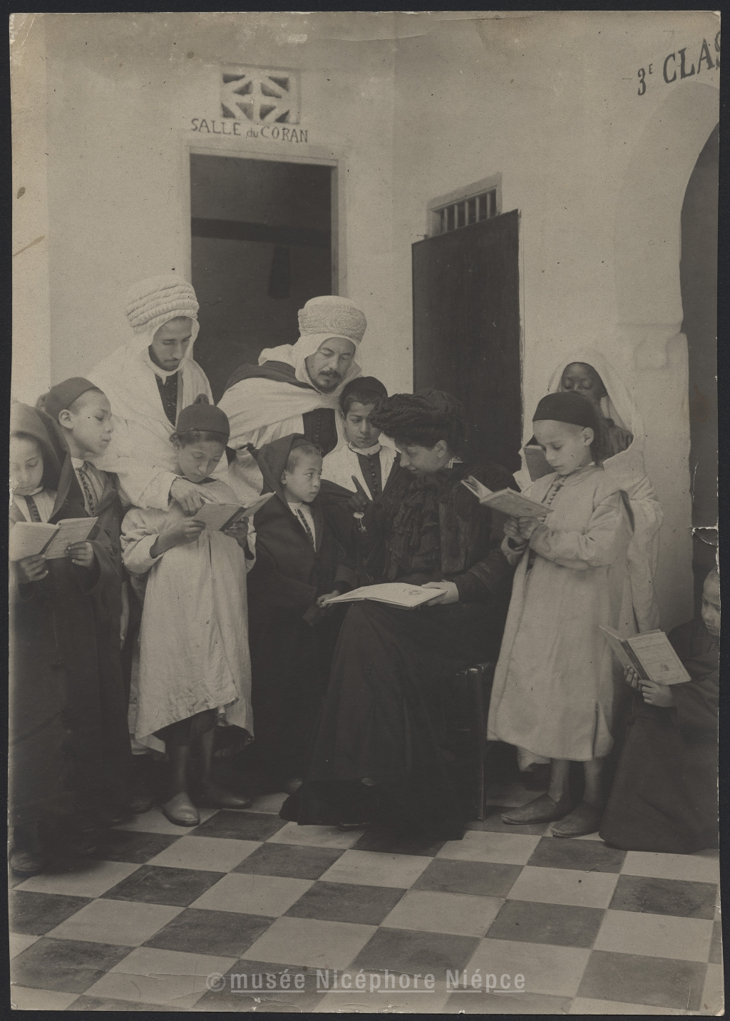 Femme européenne instruisant un groupe d'enfants musulmans