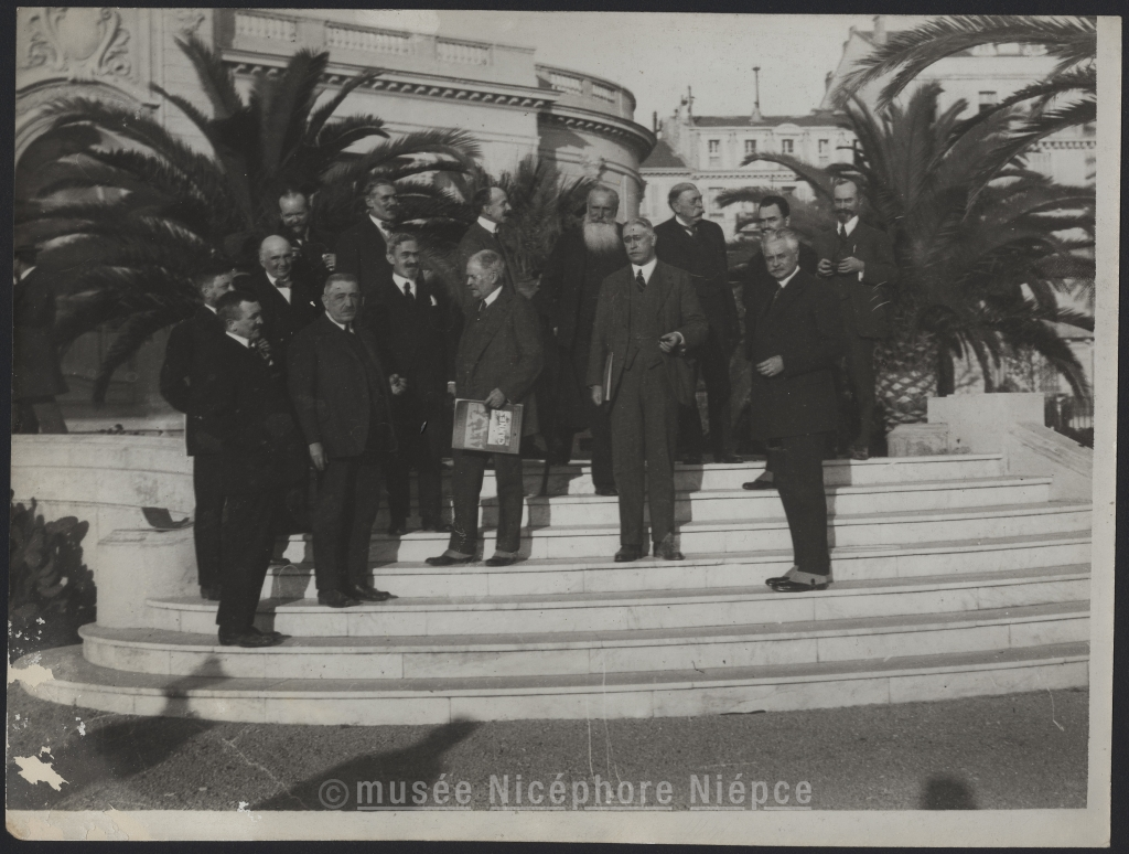en pose - groupe de figures - homme politique - escalier - ? - Cannes - ? journal - Anonyme - CHUSSEAU-FLAVIENS